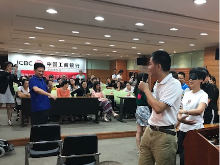 參加培訓的工行員工們不但需要學習理論知識,還需要進行現場模擬操作。“這樣有助于我們深入了解殘障人士心理特點,有效掌握與殘障人士溝通的技巧,提升我們的無障礙金融服務能力?!惫ば邢嚓P負責人表示。