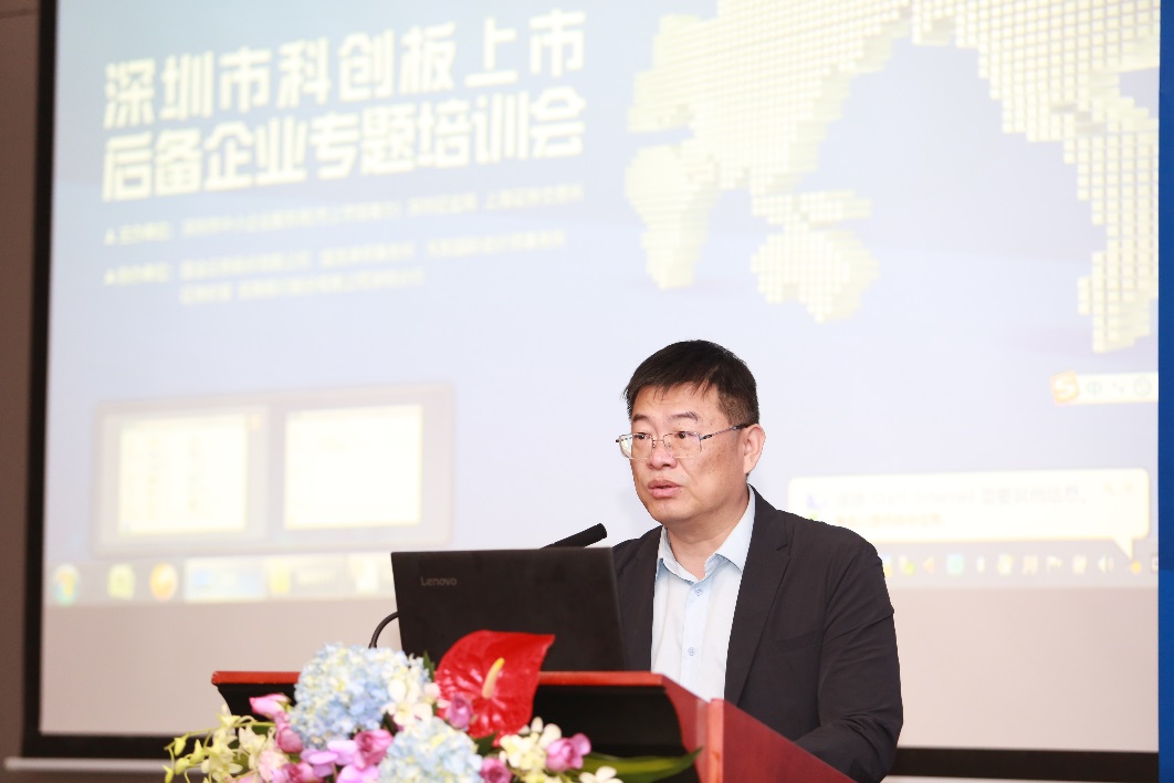 本次培訓會由賈長勝局長致開幕詞,賈局長提到, 深圳市中小企業(yè)局一直致力于扶持本地 中小 企業(yè)做大做強, 本次培訓會旨在幫助 后備 企業(yè)深入了解科創(chuàng) 板制度安排和 政策導向、企業(yè)上市策略及上市流程等方面的內容, 助力深圳本地企業(yè)把握歷史機遇 登陸科創(chuàng)板 ,借力資本市場開創(chuàng)新里程續(xù)寫新篇章 。