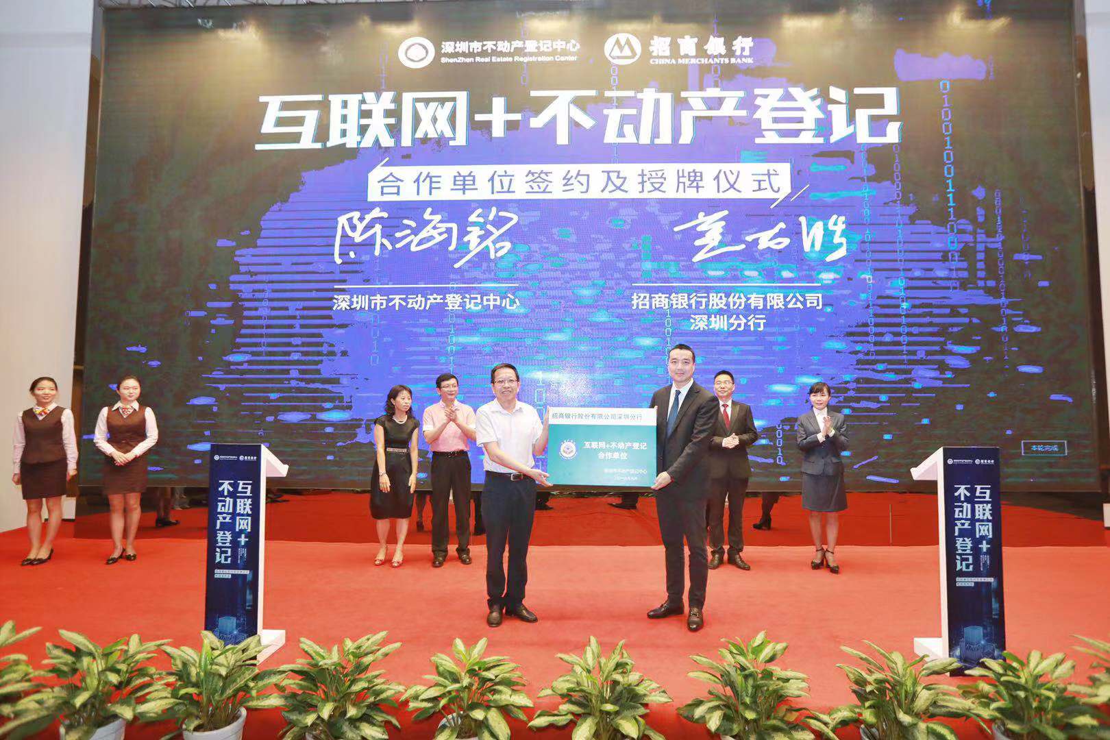 深圳新聞網2019年9月24日訊 今日,深圳市不動產登記中心與招商銀行深圳分行舉行“互聯網+不動產登記”合作單位授牌儀式,并同步上線“不動產抵押登記全程電子化”在線申請服務系統,為企業和市民提供在線辦理抵押權首次登記和抵押權注銷登記服務。