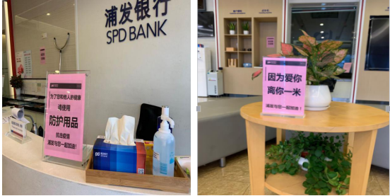 2月10日,在接到浦發深圳分行統一部署的復工安排后,科苑支行落實網點廳堂的各項防疫措施和人員復工的安全措施,在確保員工和客戶健康安全的前提下,全力保障各項金融服務需求。走進浦發,可以看到廳堂多處區域配備了口罩、消毒液、一次性手套等防控物資,在廳堂顯眼處設計擺放了“因為愛你,離你一米”等暖心提示。其中,黨員同志們帶頭在廳堂進行宣傳指引,協助做好防護措施。
