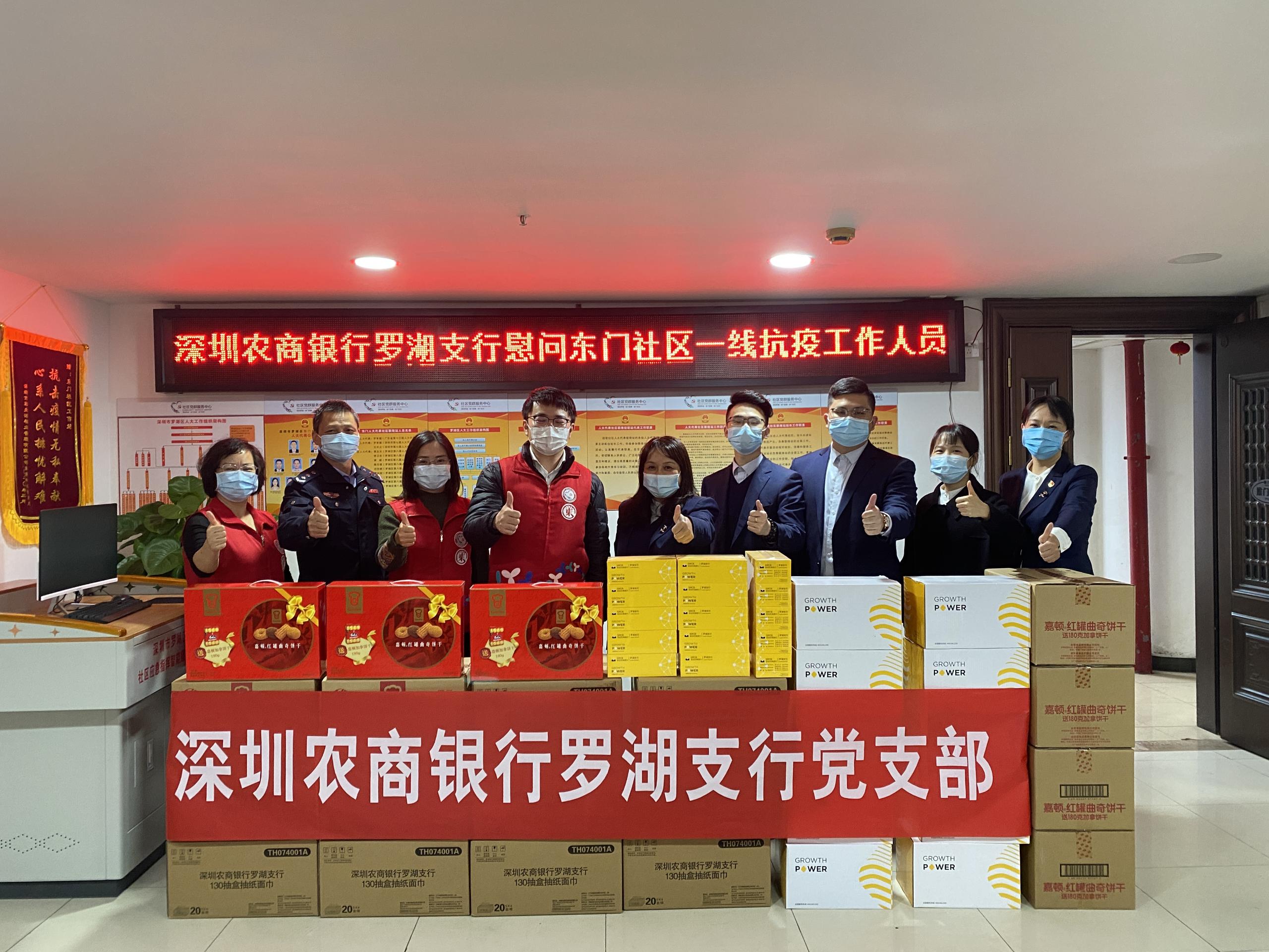 深圳新聞網(wǎng)2022年1月15日訊(記者 朱琳 通訊員 張保英 凌環(huán))臨近年關(guān),深圳再次拉響疫情防控警報(bào),深圳各區(qū)緊急開展各項(xiàng)工作,特別是此次出現(xiàn)較多疫情病例的羅湖區(qū)更是每日一測(cè)。作為一直以來服務(wù)當(dāng)?shù)氐谋就零y行,為貫徹落實(shí)市政府的防疫要求,積極響應(yīng)號(hào)召,深圳農(nóng)商銀行羅湖支行在總行的統(tǒng)一部署下,充分發(fā)揮網(wǎng)點(diǎn)深入社區(qū)的特性,急防疫之所急,送溫暖捐物資,為社區(qū)疫情防控送上綿薄之力。