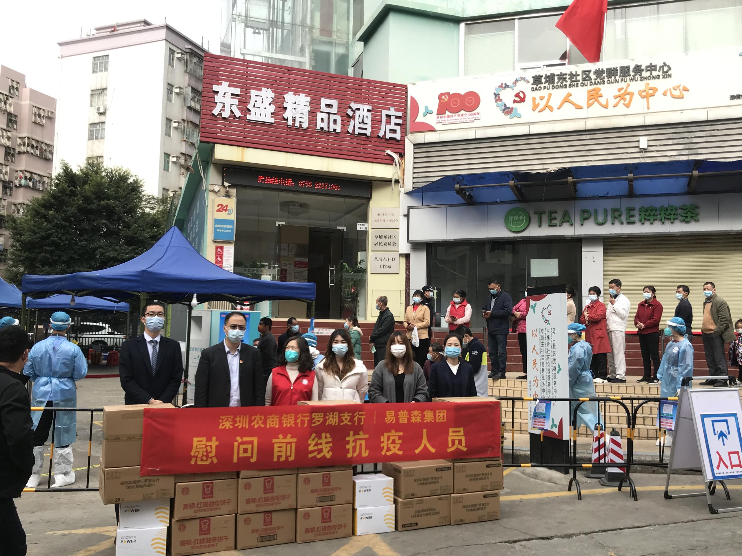 草埔東社區(qū)工作站張廣華書張書記表示:非常感謝前來慰問的單位和企業(yè),心暖暖的,知道有很多人在關(guān)心他們,累點(diǎn)苦點(diǎn)沒什么。這也是深圳農(nóng)商銀行羅湖支行發(fā)起本次活動(dòng)的初衷,希望物資不僅帶給抗疫人員體能上的補(bǔ)充,同時(shí)也讓他們感受到他們不是一個(gè)人在戰(zhàn)斗,大家一起協(xié)力,共同打贏深圳這場(chǎng)疫情防控阻擊戰(zhàn)。