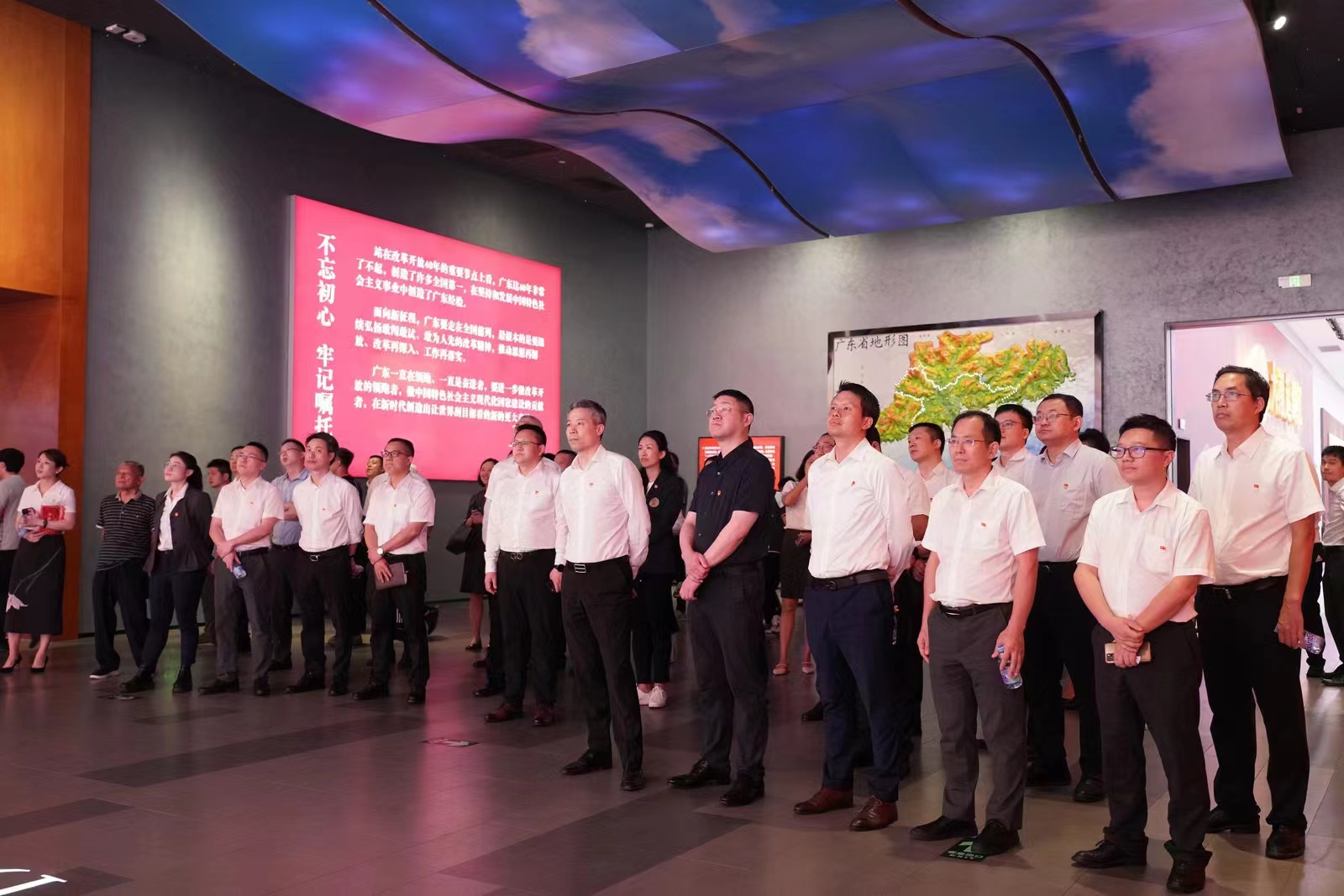 展廳里,大家目睹了從牌坊矮屋到高樓林立、從漁船耕牛到高架高鐵、從貧瘠的土地到國際化大都市的變化,今昔生活強烈對比,歷史場景歷歷再現,見證了南粵大地改革開放四十年來的發展與榮光,全體黨員的驕傲和自豪之情油然而生。