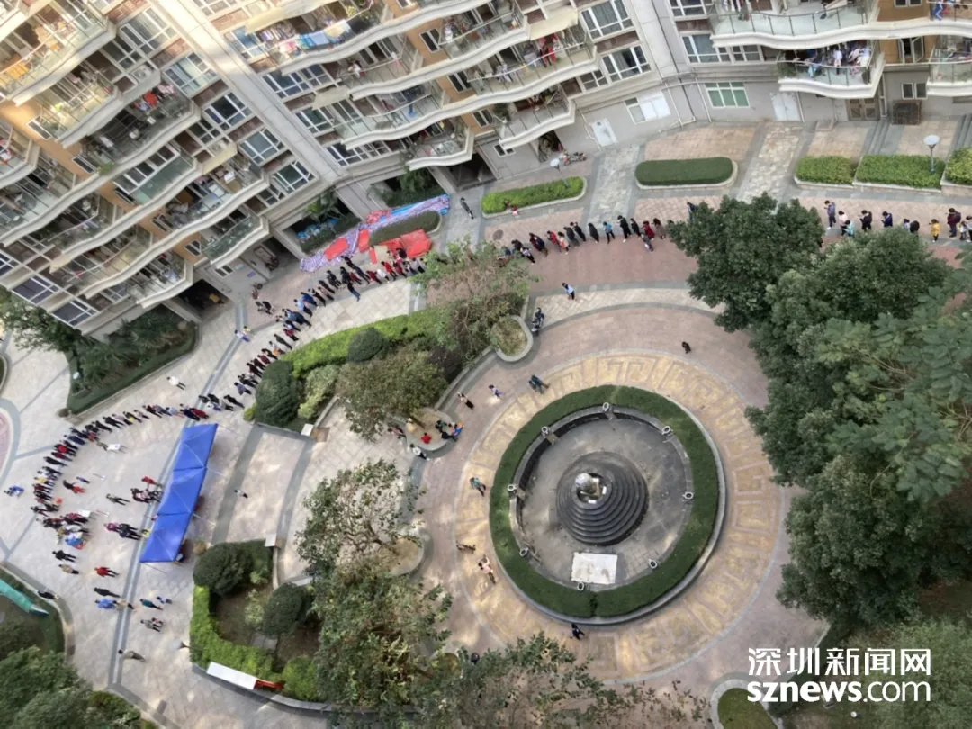 布吉理想家園小區(qū),市民有序排隊(duì)做核酸檢測