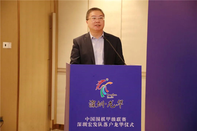 王衛在致辭中表示,圍棋源于中國,是中華文明的結晶,發展圍棋運動是堅定文化自信、弘揚中華優秀傳統文化的重要途徑。龍華區每年堅持舉辦圍棋世界冠軍龍華行活動,包括李昌鎬、柯潔、古力、孔杰、羅洗河在內的多位圍棋大咖都曾來到龍華,與區內圍棋愛好者現場對弈、指導交流,奠定了龍華圍棋運動的廣泛群眾基礎。深圳宏發隊作為唯一代表深圳市參加全國最高水平圍棋賽事的職業隊伍,此次落戶開啟了雙方合作共贏的新篇章。希望深圳宏發隊充分發揮自身優勢,再創圍棋事業新輝煌,努力打造成龍華文體事業新IP。區委區政府將全力當好東道主、打好服務牌,助力包括深圳宏發隊在內的各類文體團隊發展壯大。