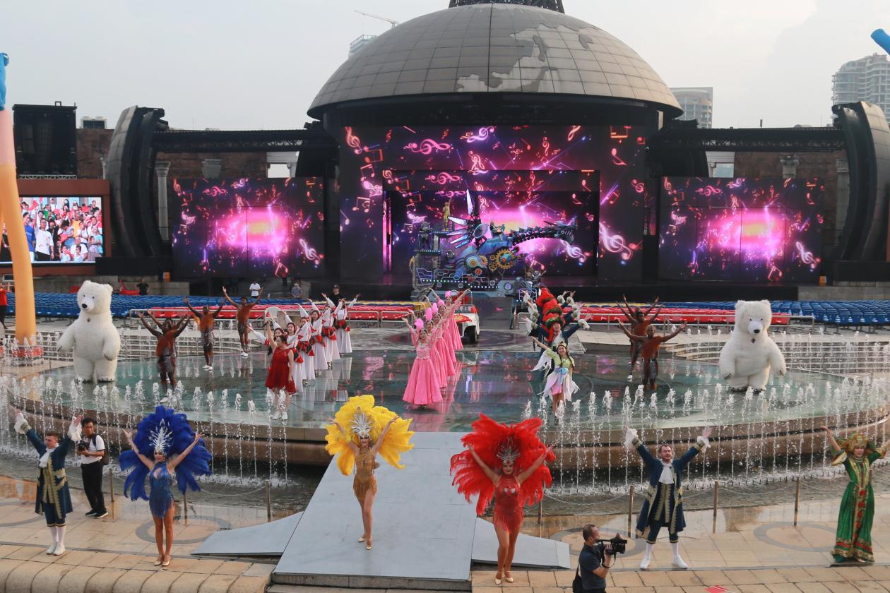 17:00—22:00鐵塔下,今年國慶最重磅節(jié)目超豪華陣容“WOW潮音嘉年華”閃亮登場,本屆潮音嘉年華群星璀璨,新生代實力歌手趙磊、狂歡一路歌舞相隨,國內dancerock先行軍“脆莓樂隊”一經出場全場狂歡吶喊,粉絲們瘋狂打 call!直擊心靈的音樂,震撼的舞臺效果游客們紛紛表示“值回票價”。接下來的幾天重磅明星接連不斷: solo新星趙讓、霓虹花園、Hiphop少年組合BOY STORY、脆莓樂隊、LeeyOn李昂、對角巷樂隊、布偶樂隊、圳動、黑玫瑰俱樂部、Spaceman太空人等演藝界先鋒人物將陸續(xù)登上舞臺傾情獻演,用充滿活力的青春姿態(tài)向未來致敬,現場游客沉浸其中,隨著歌手與音樂不斷嗨!環(huán)球舞臺同時上演大型音樂舞蹈史詩《盛世紀》;冰場廣場開啟魔幻光影秀《奇幻歐洲》。