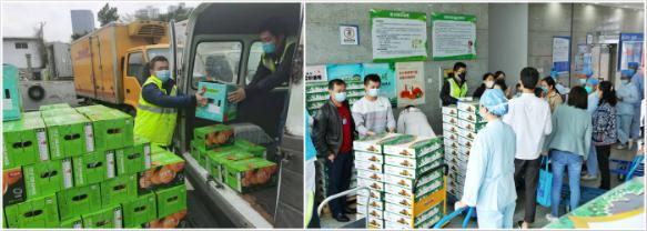 鑫榮懋助力前線抗疫的行動,持續在進行。前幾天,在廣州,鑫榮懋為廣東省第二人民醫院、廣州中山大學附屬第三醫院送去440箱新鮮水果。還為大朗北社區工作者送去足量新鮮水果。