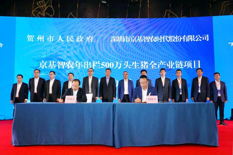 見圳客戶端·深圳新聞網2020年5月25日訊 2020年5月22日,廣西東融先行示范區(賀州)建設發展若干政策新聞發布會暨“灣企入桂”賀州項目推介會在深圳舉行。推介會上,深圳市京基智農時代股份有限公司 (以下簡稱“京基智農”)與廣西賀州市人民政府簽署《京基智農賀州市年出欄500萬頭生豬全產業鏈項目合作框架協議》,這意味著京基智農生豬產業布局劍指千萬頭規模,現代農業板塊駛入發展的快車道。