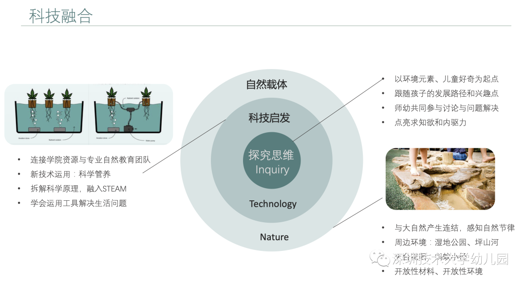 園舍內,聯動大學學院資源和專業自然教育團隊打造自然教育場所,使得科技與自然在幼兒環境中有機結合。自然在前,技術運用在后,孩子將用探究的眼光發現如何運用技術解決生活問題。