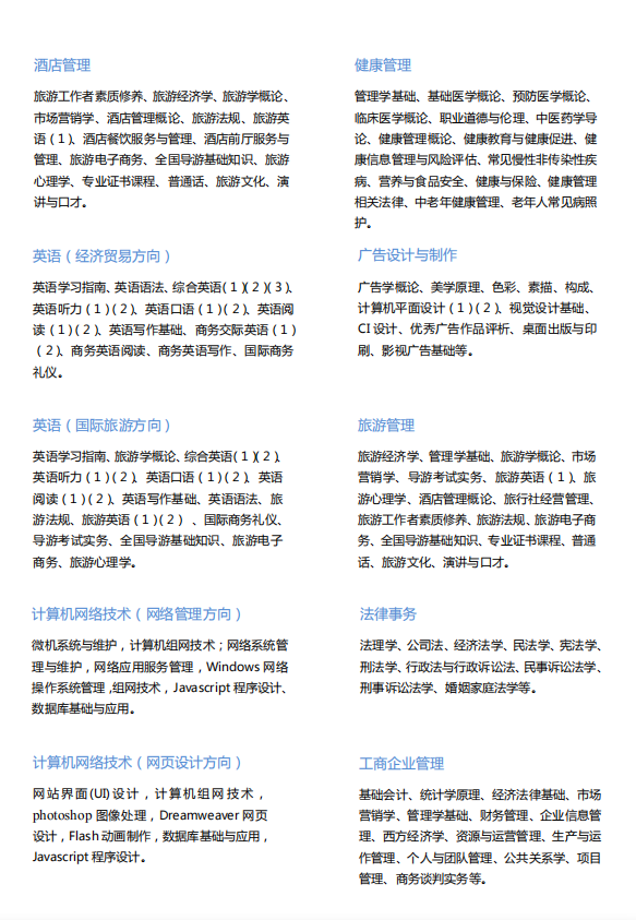 專科專業:具有普通高中、職業高中、技工學校、中等專業學校及以上學歷者。
