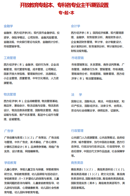 專科起點本科專業:具有國民教育系列相同或相近專業高等專科(含專科)以上學歷者。