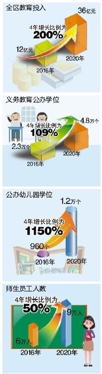 加大教育投入,教育支出增長(zhǎng)200%;加快公辦學(xué)校和幼兒園建設(shè),公辦幼兒園從2所增加到31所,公辦園學(xué)位從960個(gè)增加到1.2萬個(gè),增長(zhǎng)1150%;新建、擴(kuò)建公辦中小學(xué)12所,義務(wù)教育公辦學(xué)位從2.3萬個(gè)增加到4.8萬個(gè),增長(zhǎng)104%。短時(shí)期內(nèi)實(shí)現(xiàn)公辦學(xué)位保障率全市遙遙領(lǐng)先。