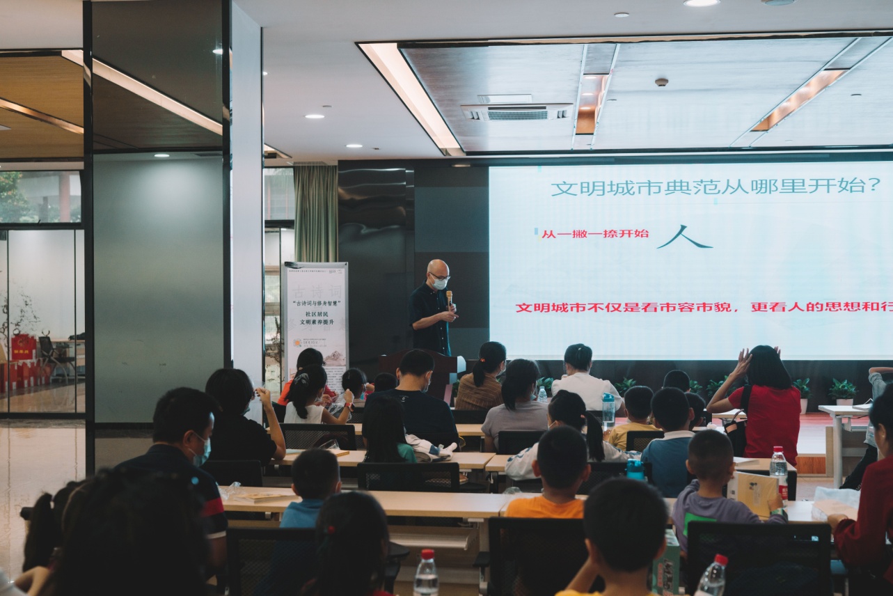 讀特客戶端·深圳新聞網(wǎng)2021年11月1日訊(記者 陳彬 通訊員 林娟玉 楊婷姻 )10月31日下午,由南山區(qū)文明辦、南山新時代文明實踐中心指導,桃源街道黨工委(辦事處)、桃源街道新時代文明實踐所主辦,福光社區(qū)黨委、福光社區(qū)新時代文明實踐站協(xié)辦,深圳市壹書文化傳播有限責任公司承辦的“‘古詩詞與修身智慧’社區(qū)居民文明素養(yǎng)提升”活動在福光社區(qū)黨群活動中心多功能室舉行,活動吸引了60余名家長及小孩參與,本次活動根據(jù)親子的特點,形式生動活潑,氣氛熱烈,受到現(xiàn)場觀眾的一致好評。