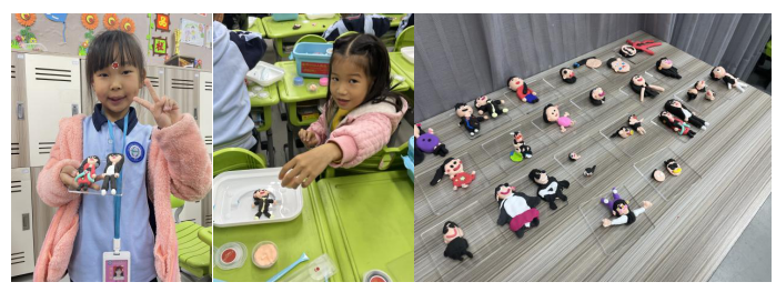 翌日,老師們再次來到華一校園,為小學部104班的學生們帶來了一場以“給老師塑像”為主題的泥塑體驗課。課堂中,老師先是一步步引導孩子該如何觀察他們的模特,后又鼓勵他們大膽動手,釋放自己的想象力和創造力。孩子們也都“各顯神通”,用自己獨特的方式去表現他們眼中老師的形象。有的為老師做了蝴蝶結,有的為老師帶上耳環,有的給老師換衣服,有的給老師戴眼鏡,氣氛十分活躍。在課堂結束時,大家都興奮地捧著自己的作品,與老師、同學們分享著創作的喜悅。