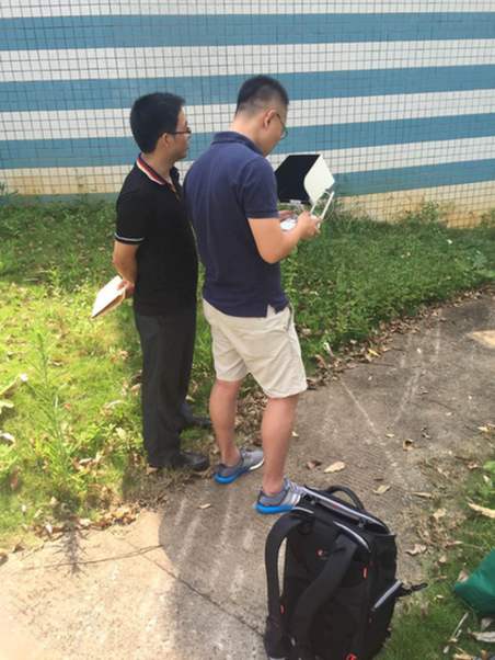 我們的飛哥正在調試他的大玩具——航拍無人機,馬上起飛咯!喂喂喂,飛哥,可不要讓旁邊的朋友偷學到你高超飛行技巧的秘訣啊!