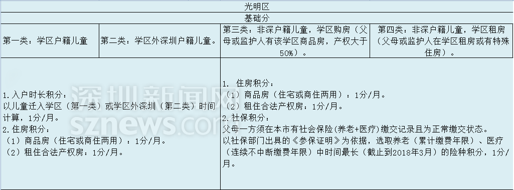 光明新區按學位類型順序錄取,第一類>第二類>第三類>第四類,相同學位類型,按積分由高到低順序錄取。
