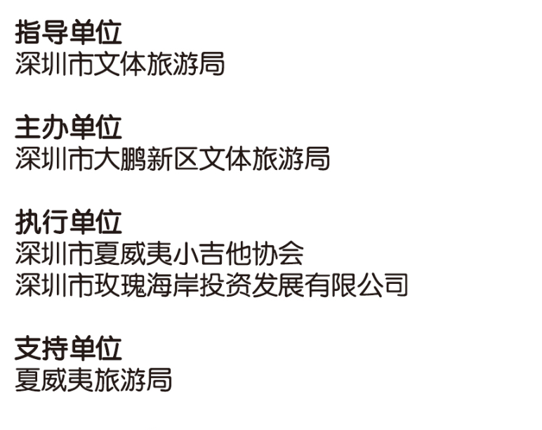 大鵬新區擁有相對豐富的尤克里里音樂文化底蘊,新區音樂學科自2015年已經與深圳市夏威夷小吉他協會開展合作,為全區音樂教師開展尤克里里師資培訓至今,在全國中小學音樂教師體系率先開展尤克里里課程。本屆大鵬的嘉年華將會為大鵬的學校,社區帶來更多的資源,與更多國際尤克里里協會,知名演奏家交流與互動,讓這種浪漫自由的樂器能在新區扎根發芽,開花結果,將新區打造成中國的“尤克里里之鄉”。