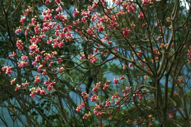 "這種花的特別之處在于先開花,后長葉。"梧桐山風景區管理人員介紹,吊鐘花開花的順序也十分有趣。枝頭小小如嫩筍般的就是它的花苞。當"嫩筍"每一片包片的邊緣開始變成紅色,"嫩筍"的頂部就開始綻開,第一朵風鈴狀的小花從"筍"尖"破繭而出"。待第一朵花長好后,其他花方才陸續相繼開放。
