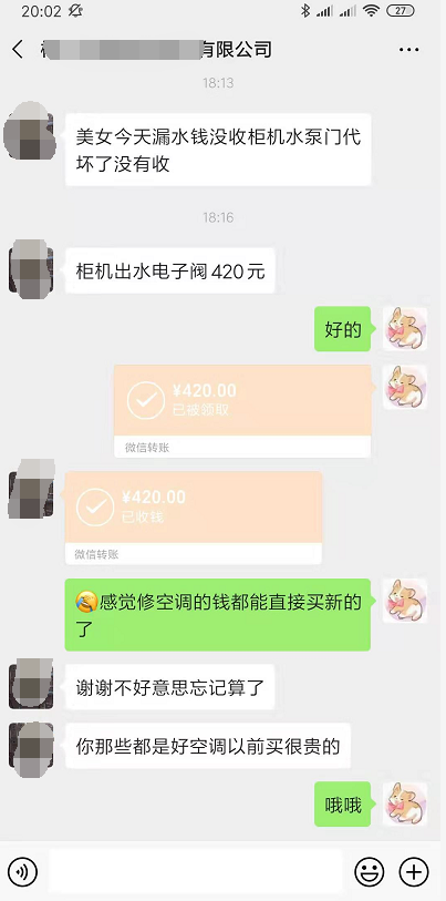 藍先生的妹妹在58同城小助手,找到了深圳市易臣國際貨運代理有限公司,并預約了上門清洗空調的服務。當師傅上門以后,除了清洗外,還說空調存在多個問題,如需要加雪種(學名“氟利昂”)、線路老化、空調漏水等,6臺空調整體清洗加修理下來,藍小姐當天共花費6618元。