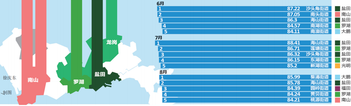 推進環境質量邁進國際一流,深圳一直在行動。細心的市民可能早已發現,深圳市城市管理和綜合執法局官方網站每個月都會發布“深圳市環境衛生指數排行榜”,為深圳的環境衛生“打分”。據了解,深圳市環境衛生指數測評排名已連續開展了兩年半,有效促進了全市環境衛生的提升和轉變。今年上半年的“成績單”顯示,全市各區(新區)各街道你追我趕,測評工作帶動社區環境改善,環境衛生的整治提升得到了市民的廣泛認可和好評。