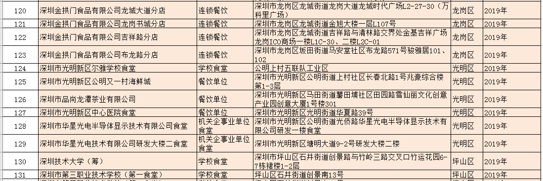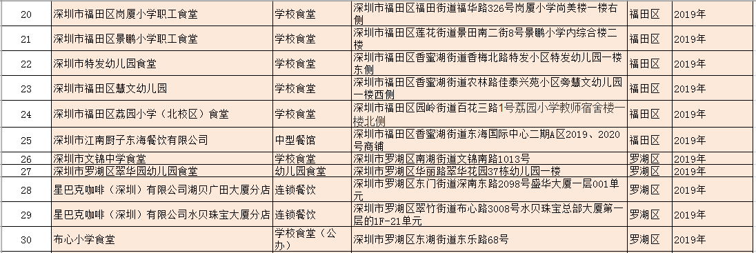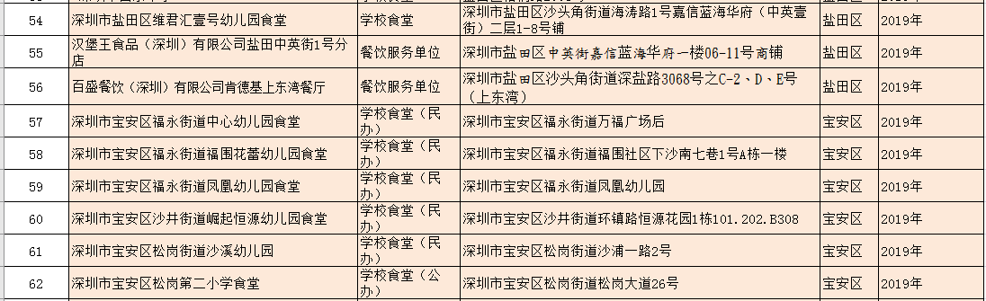 除了新增的A級餐廳外,該局還公布了降級餐廳名單:深圳市龍崗區龍崗街道培英幼兒園食堂因不符合餐飲服務食品安全量化等級A級要求予以降級。以及1家變更單位名稱的A級餐飲服務單位:原名稱為深圳市光明區培真幼兒園食堂的單位變更名稱為:深圳市光明區鳳凰街道嘉明幼兒園食堂。