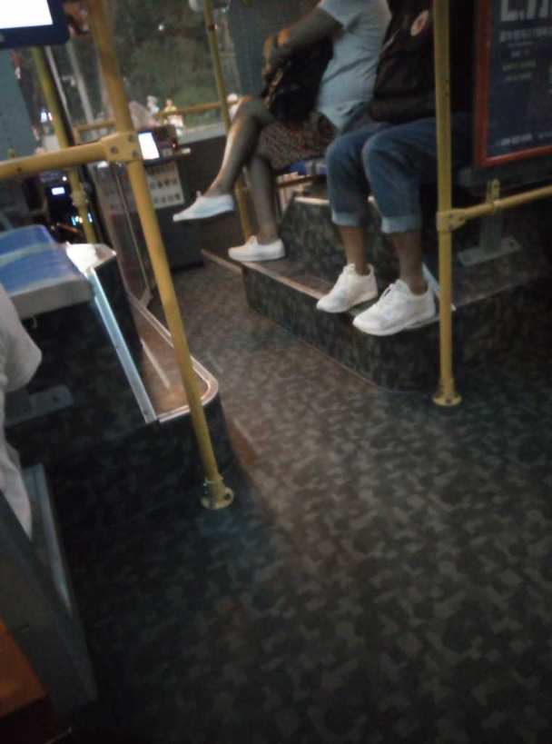 由于這幾個座位較高,蹺起的二郎腿自然也低不了,伸到了通道中間,有成人的膝蓋部高,給通行造成不便。這一舉止, 對當事人來說或許只是一個習慣性的動作, 但在公交車這個公共場合,不僅不雅觀, 也給本不寬敞的通道設下“障礙”,導致其他乘客通行艱難。