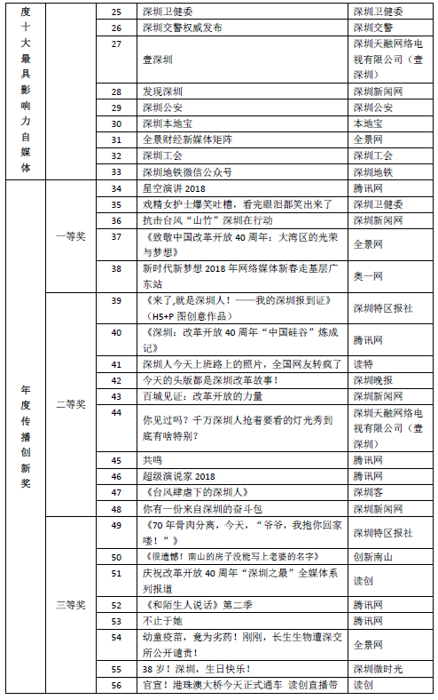 深圳年度優秀政務新媒體名單