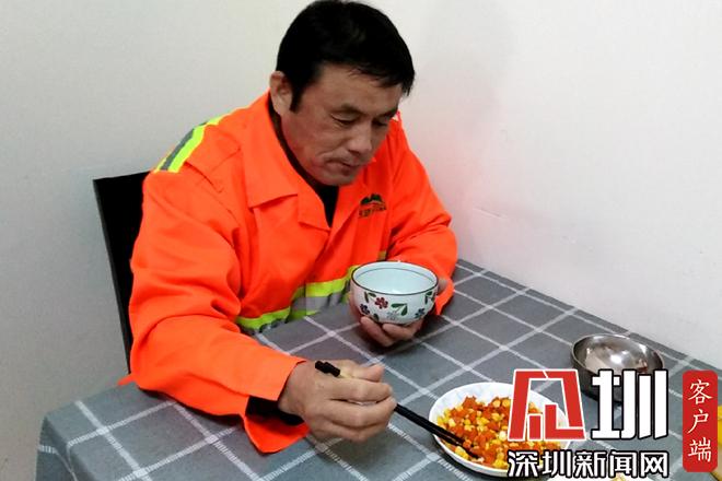 胡蘿卜丁炒玉米,再加一碟土豆絲下飯,這就是黃學(xué)志的午餐。黃學(xué)志說(shuō),他有幾年沒(méi)回老家了,本來(lái)計(jì)劃春節(jié)回去過(guò)年,順便帶老伴看病,沒(méi)想到疫情越來(lái)越嚴(yán)重,于是就打消了這個(gè)念頭。疫情發(fā)生以來(lái),除了日常工作,他還要負(fù)責(zé)為值班同事普及疫情防控知識(shí)的任務(wù)。從早上7點(diǎn)半到12點(diǎn)半,下午1點(diǎn)半到5點(diǎn)半,他每天在沙頭角7個(gè)垃圾轉(zhuǎn)運(yùn)站、18個(gè)公廁來(lái)回奔走,給同事配送口罩及消毒用品,檢查他們的身體健康情況。“現(xiàn)在是疫情防控關(guān)鍵期,我們也希望為防控工作貢獻(xiàn)出來(lái)自環(huán)衛(wèi)清潔行業(yè)的一份力量。”黃學(xué)志說(shuō)。(見(jiàn)圳客戶端、深圳新聞網(wǎng)記者鄧雪婷)