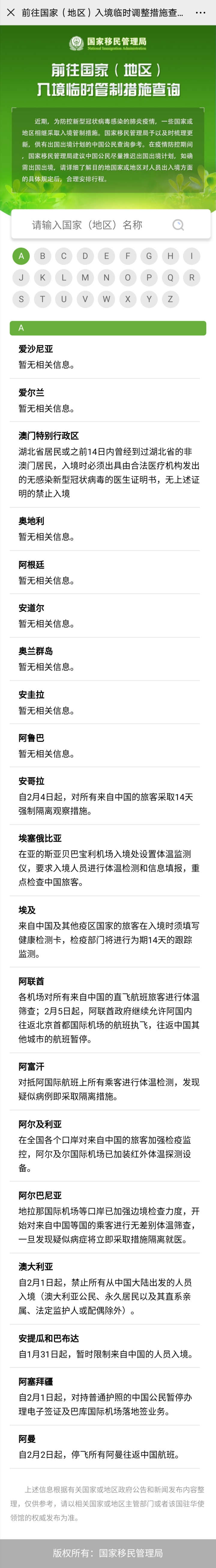 此外,國家移民管理局建議,疫情防控期間中國公民盡量推遲出國出境計劃,如確需出國出境,請詳細了解目的地國家或地區(qū)的具體規(guī)定再安排行程。