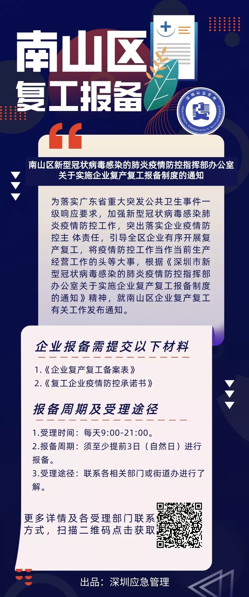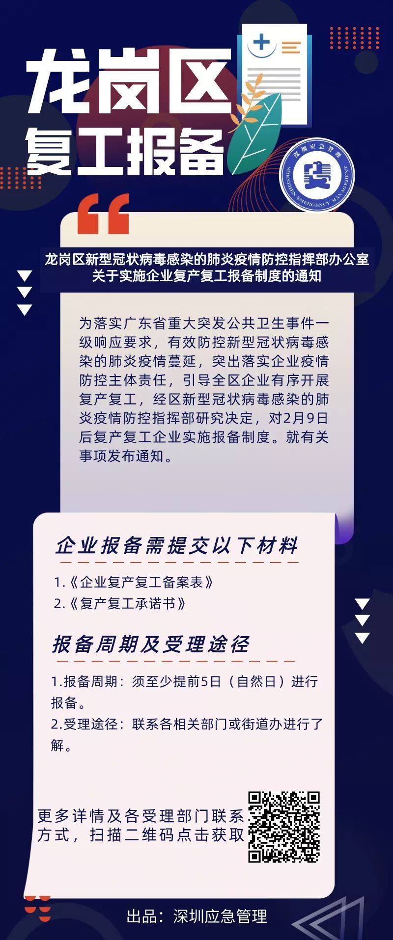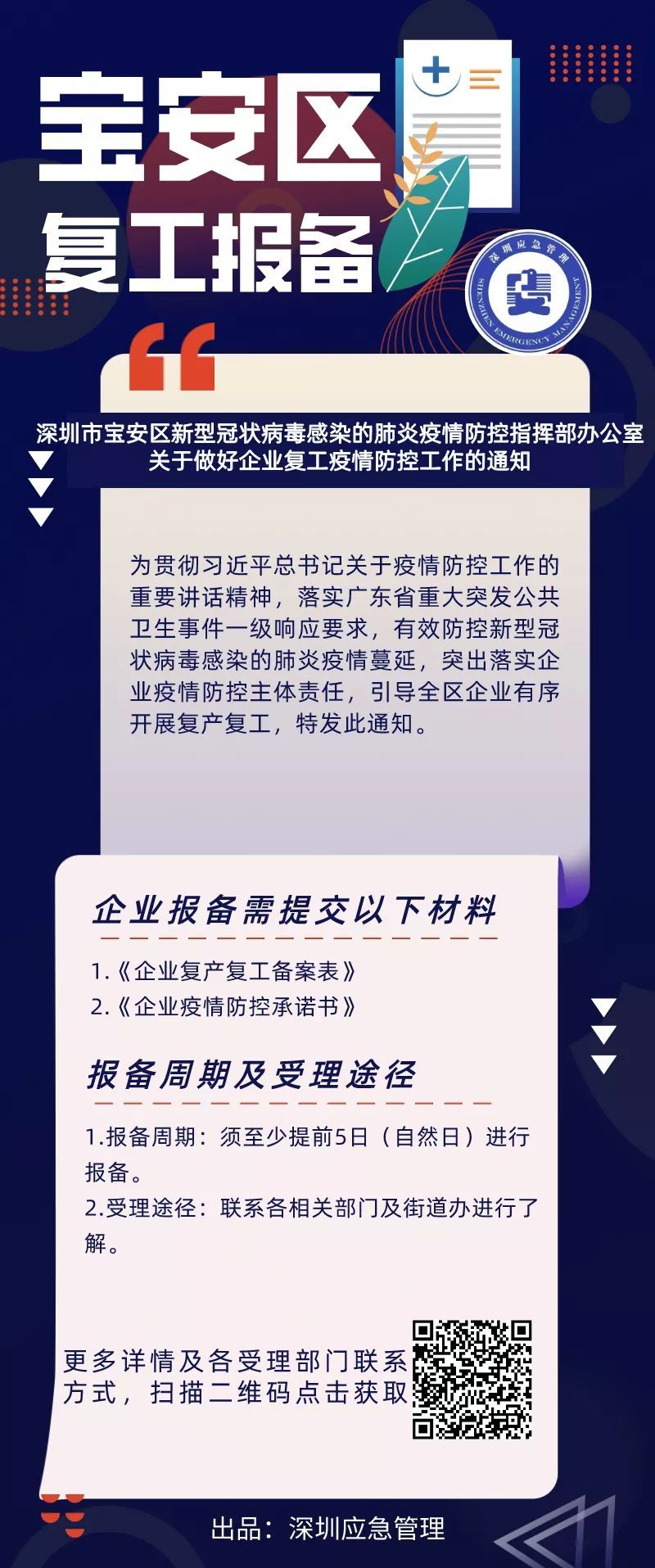 注意!深圳各區(新區)企業復工報備具體申請工作指引在這里