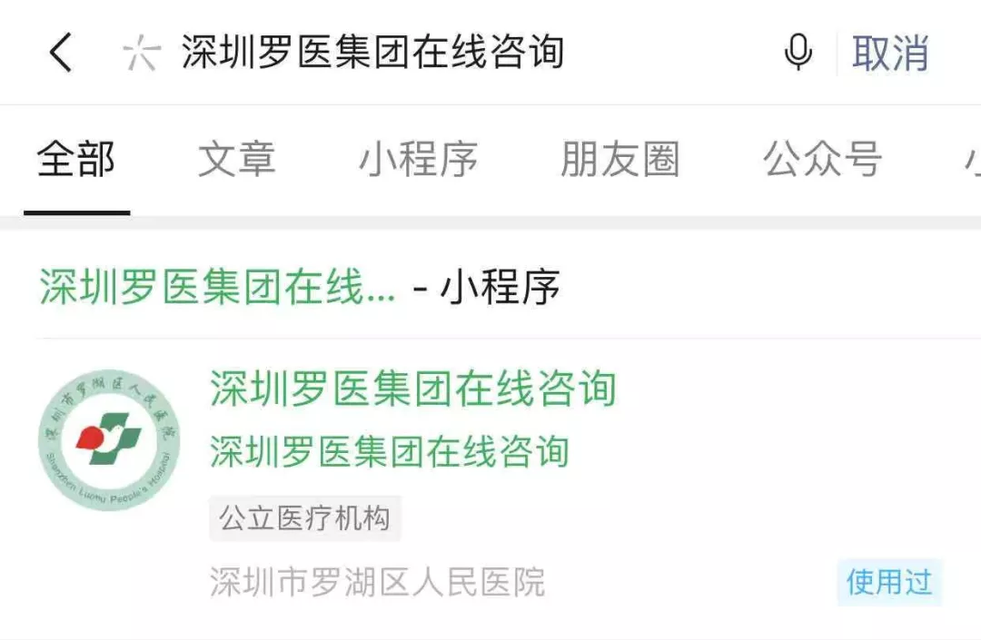 ③或者在微信右上角“搜一搜”搜索“深圳羅醫集團在線咨詢”進入小程序