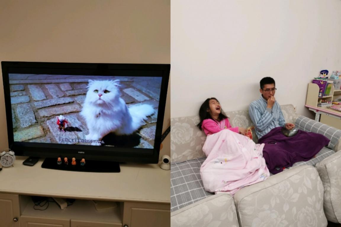 晚上固定時間一家人看新聞和焦點訪談,有時候有些好的文章,我們會讀給她聽。
