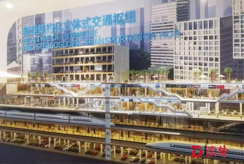 比如,樞紐建筑地下六層,其中上面三層為軌道及交通換乘區,實現站城、市政道路無縫對接;下三層為地下車庫,設4900多個停車位。上蓋開發部分定位為集樞紐立體商業、甲級辦公、國際星級酒店及服務式公寓、商務公寓于一體的超級樞紐城市綜合體。