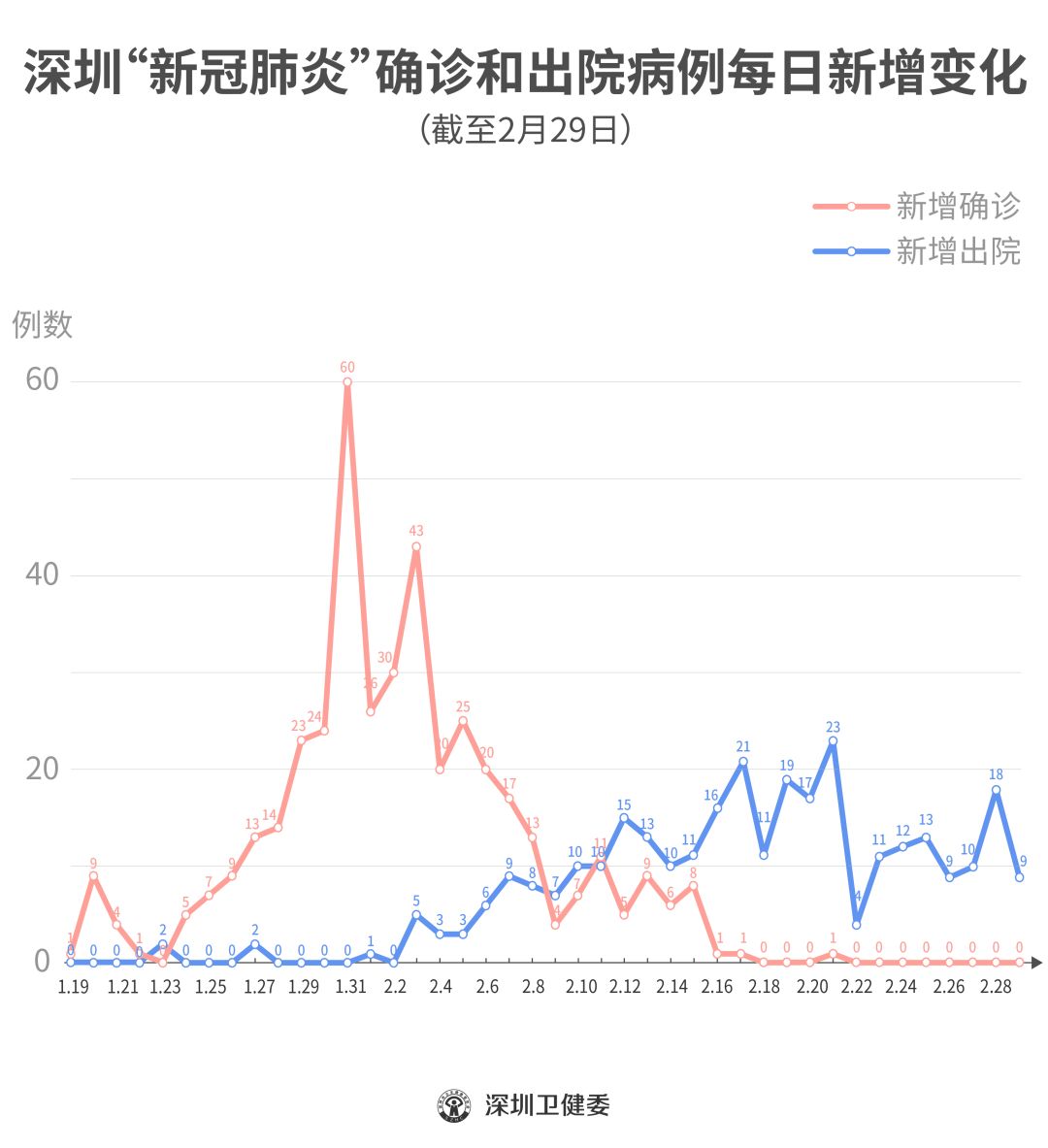 截至2月29日24時,深圳累計報告“新冠肺炎”確診病例417例。2月29日當(dāng)天全市無新增確診病例,當(dāng)天出院病例9例(從26日起不再公布出院個案)。