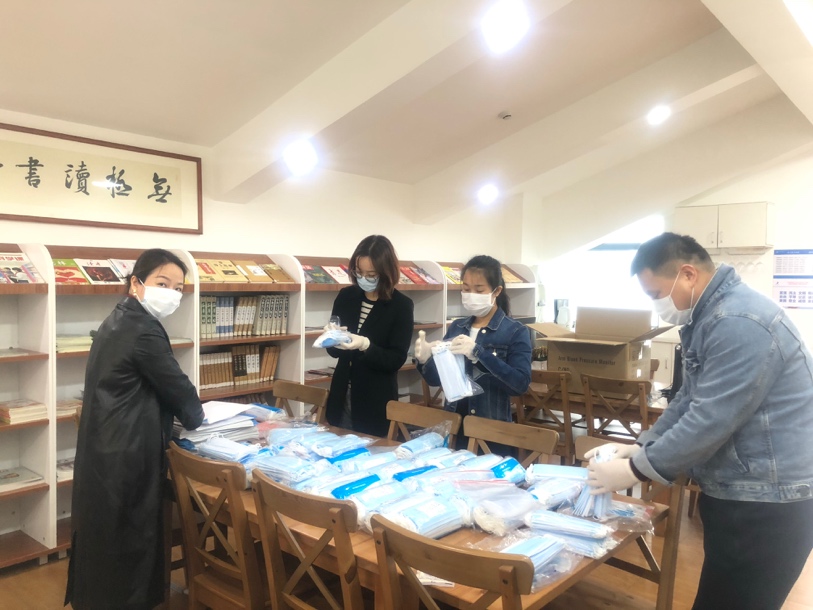 這一次,節日,校工會一致建議為繼續做好后續的“空中教學”,讓老師確保健康,為他們一并寄上一套口罩。疫情面前,口罩遮住了他們的面龐,卻遮不住眼中溫暖的笑意;手套隔離了病毒的威脅,卻不會將心靈間傳遞的溫情隔斷。