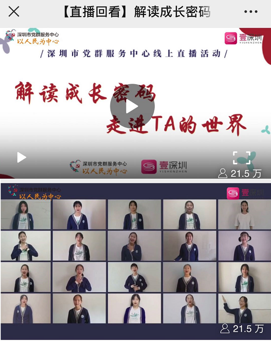 見圳客戶端、深圳新聞網(wǎng) 2020年3月19日訊(記者 陳彬) 3月15日下午,中共深圳市委組織部和深圳廣播電影電視集團聯(lián)合在壹深圳客戶端推出深圳市黨群服務中心線上直播活動,播出深圳市第二實驗學?;ㄕZ合唱團“云合唱”作品《奉獻》,截止3月18日,線上點擊量達到21.5萬 。