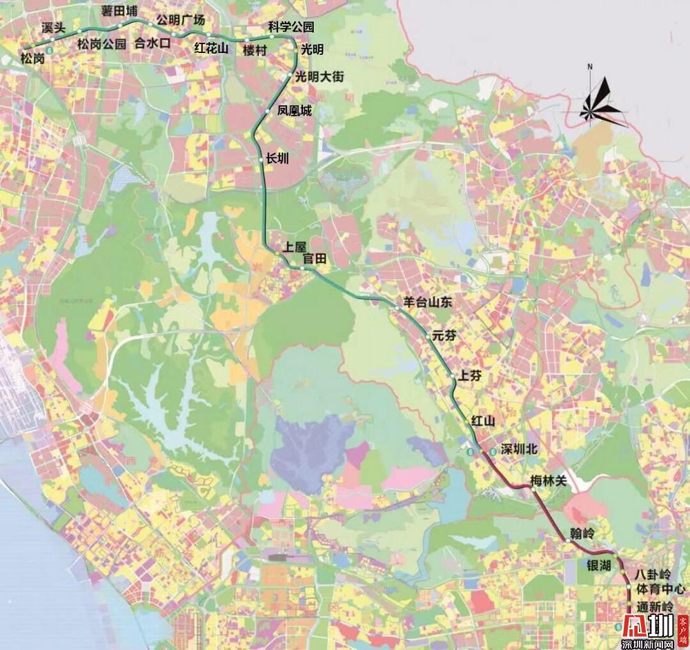 地鐵6號線線路起于松崗站,途經寶安區、光明區、龍華區、福田區、羅湖區,止于科學館站,大致呈“7形”走向,6號線一二期總長49.396公里,共設27座車站,全程用時66分鐘。線路建成后,將帶動光明區和龍華區發展、促進城市空間結構完善,進一步加強與東莞、香港城市軌道交通之間的溝通聯系,同時有效緩解深圳北站換乘壓力,加速特區經濟一體化進程。