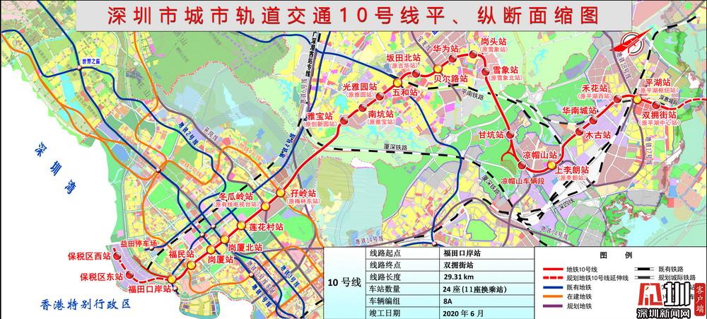 地鐵10號線起于福田口岸站,途經福田區、龍崗區,止于雙擁街站,線路全長29.31公里,共設24座車站,全部為地下車站。地鐵10號線兼具干線和局域線功能,是深圳市首條南北向采用8A編組的線路,并預留“南聯北拓”條件,成為又一條“南北動脈”,建成后,福田口岸到平湖僅用45分鐘即可到達,將大大緩解福田中心區至坂田段的交通壓力。