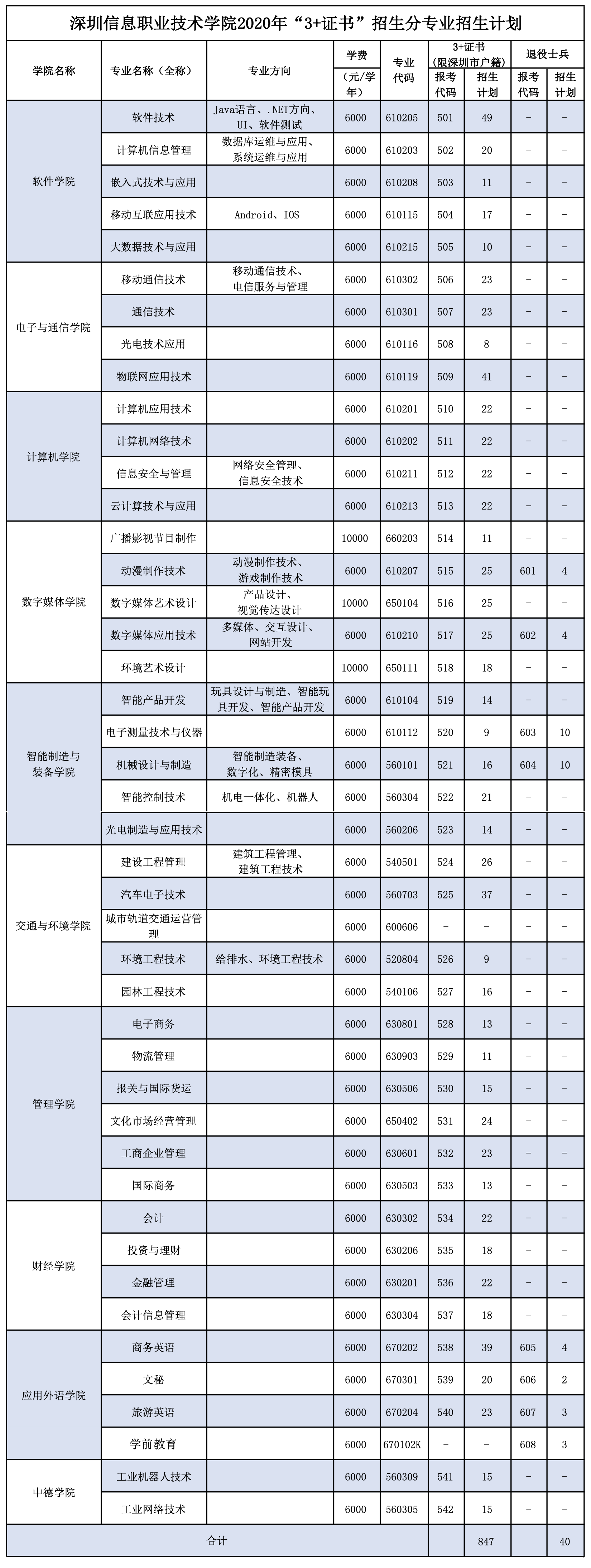4月7日啟動報名!深圳信息學院春季高考計劃招生3287人