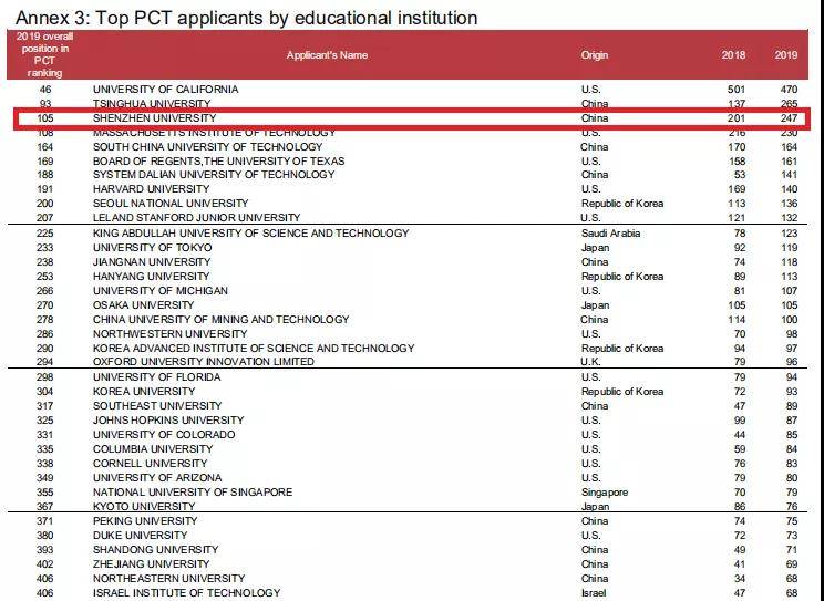 2019國際專利申請排名發布 深圳大學連續兩年位列全球教育機構第3