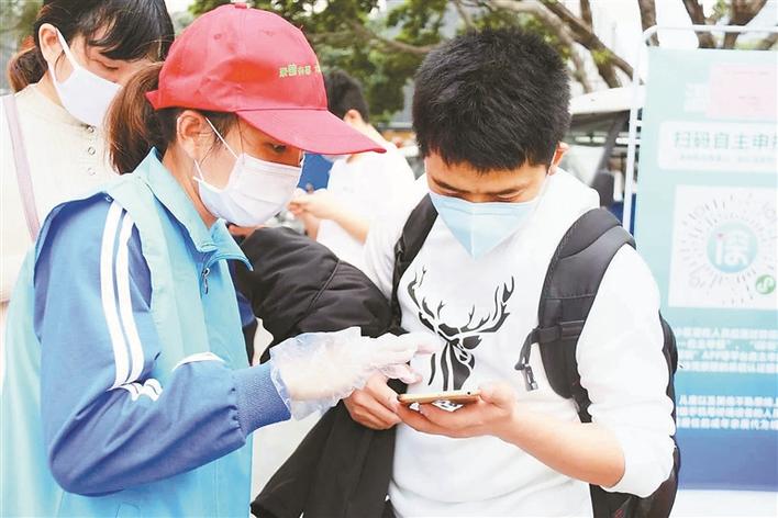 章閣社區(qū)工作人員指導居民申報個人信息。