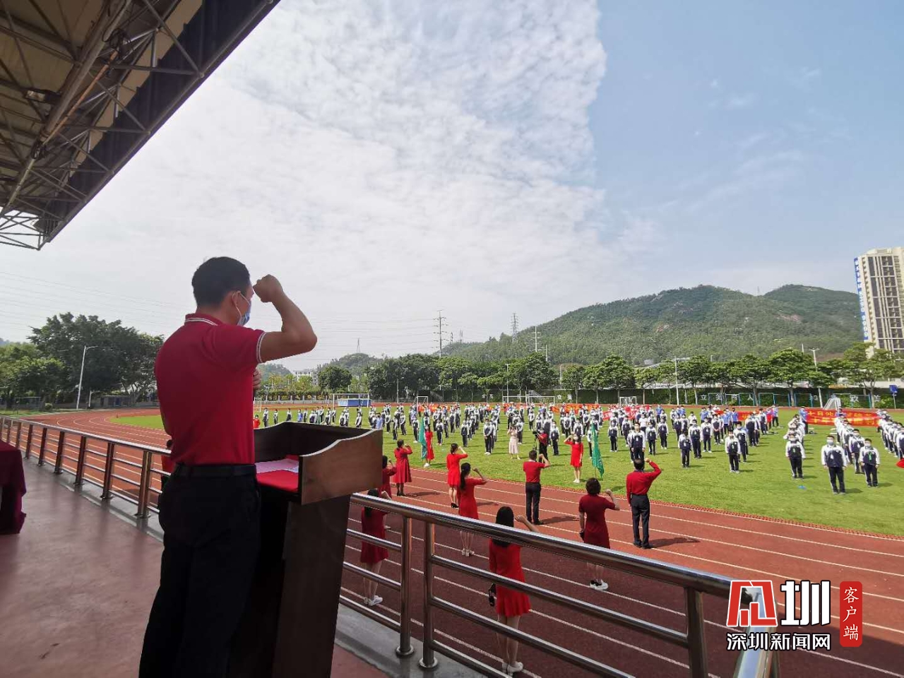 大鵬新區葵涌中學九年級全體學生進行了宣誓,楊思同學則代表九年級學生鳴響學校鐘聲,鳴響全體考生對決勝中考的美好愿望。