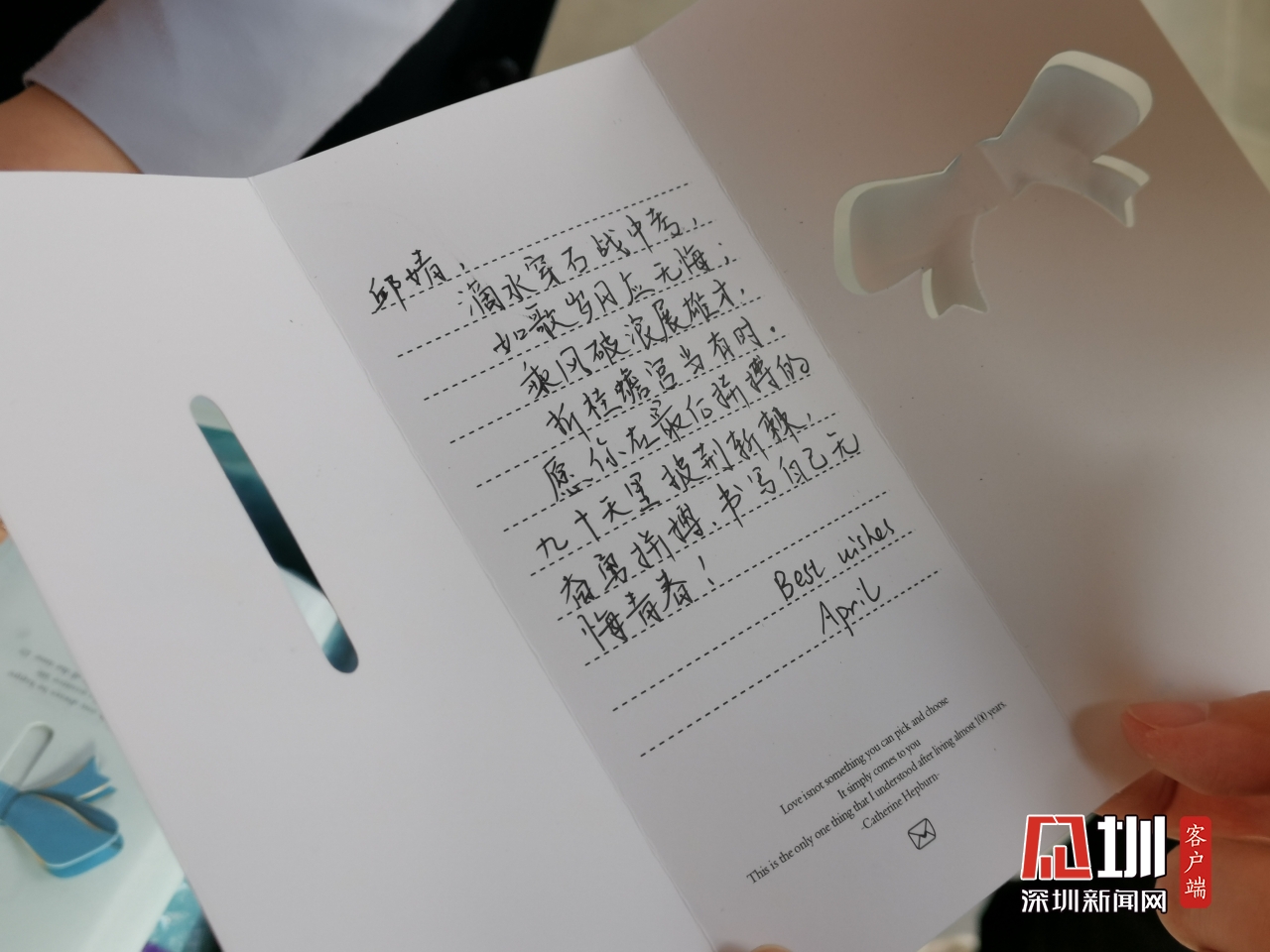 龍華區外國語學校邱婧同學收到老師祝??ǎㄠ嵢鹦?攝)