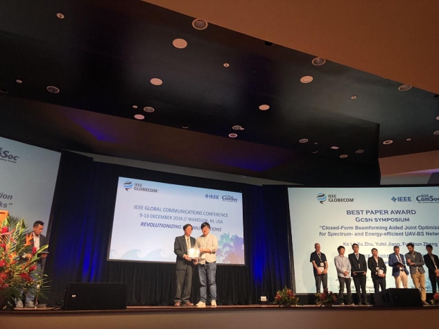 日前,由哈工大(深圳)電子與信息工程學院2017級碩士研究生李可擔任第一作者,朱旭教授、蔣宇飛助理教授、鄭福春教授為共同作者,哈工大(深圳)為第一通訊單位完成的論文《三維波束成形輔助的高譜效和能效的無人機基站網絡的聯合優化》(“Closed-Form Beamforming Aided Joint Optimization for Spectrum- and Energy-Efficient UAV-BS Networks”)入選通信領域頂級會議Globecom2019 (IEEE Global Communications Conference2019),并獲得最佳論文獎。