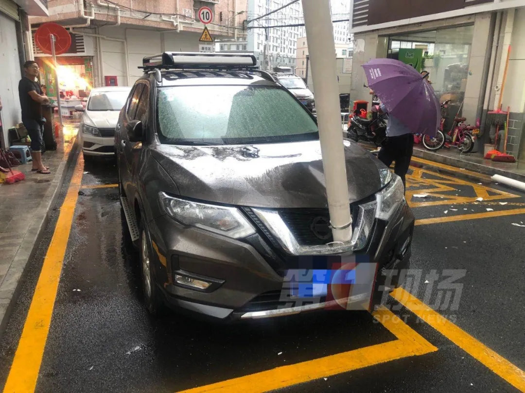 原標題:10米雨水管從天而降,直插小車“頭部”,還有床墊、儲水箱...