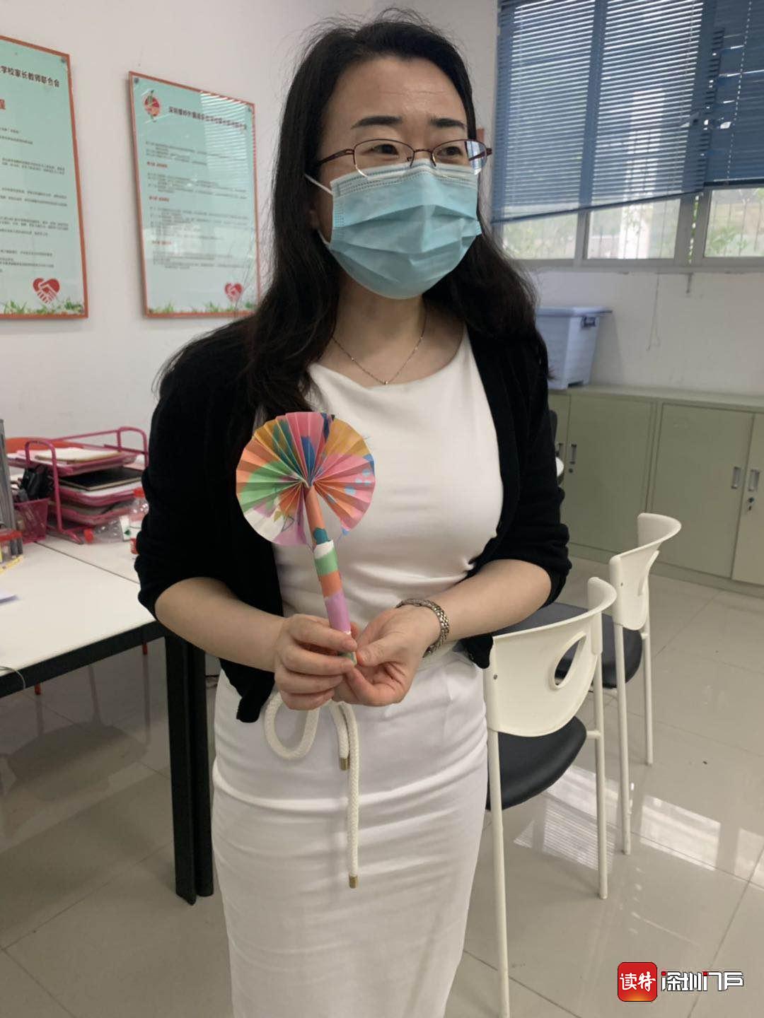 螺嶺外國語實驗學(xué)校三年級(12)班的學(xué)生林子軒專門為老師做了小折扇,一進(jìn)校門就送到了老師手里,怕老師熱。