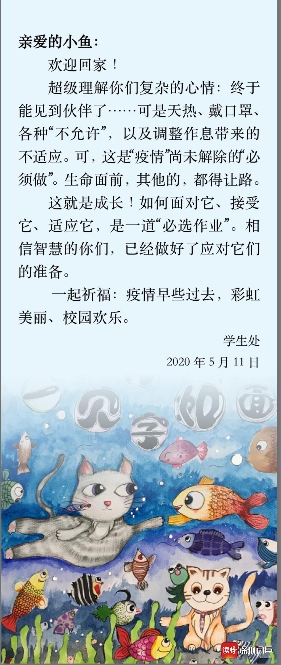 深圳小學(xué)專門為返校學(xué)生提供了“暖心包”,將口罩、疫情防控工作指引、健康信息申報卡等裝進(jìn)來。班主任在心理教師的指導(dǎo)下,根據(jù)學(xué)生的年齡特點和心理特點進(jìn)行課程設(shè)計,引導(dǎo)學(xué)生分享疫情期間的“正能量”,增強(qiáng)學(xué)生對學(xué)校、班級的歸屬感,幫助學(xué)生盡快恢復(fù)正常的學(xué)習(xí)和生活節(jié)奏。(讀特記者姚卓文)