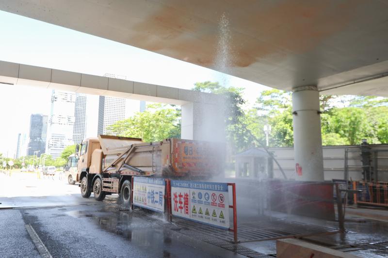 相信很多市民朋友對(duì)自卸車(chē)(俗稱(chēng)“泥頭車(chē)”)的印象就是又吵又臟,對(duì)此記者在現(xiàn)場(chǎng)看到,福田區(qū)的工地已經(jīng)用上電動(dòng)自卸車(chē),跟燒柴油的自卸車(chē)相比,不僅節(jié)能環(huán)保,且車(chē)子運(yùn)行的噪音也非常小。不僅如此,為了防止自卸車(chē)“帶泥上路”,工地的出口處還設(shè)有車(chē)輛自動(dòng)沖洗系統(tǒng),每輛泥頭車(chē)在駛出工地之前,都要經(jīng)歷一次“全身淋浴”,徹底沖干凈車(chē)身以及輪胎上的泥土之后才能離開(kāi)。