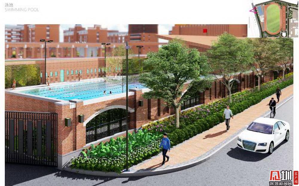 為營造一流的校園環境,打造一所具有深圳特色的百年校園和精品工程,市建筑工務署還根據深圳中學的使用需求,在球場西側建設了一個標準游泳池,讓深中學子不出校園就能滿足各種運動需求。