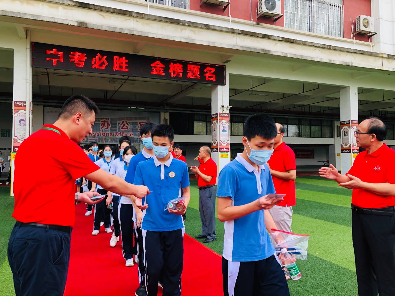 龍崗區金稻田學校的學子們趕往考場前,校長老師們送上了“護考車票”,通往“前程似錦”!目前,學子們在交警的護送下已順利到達考場。(記者李麗